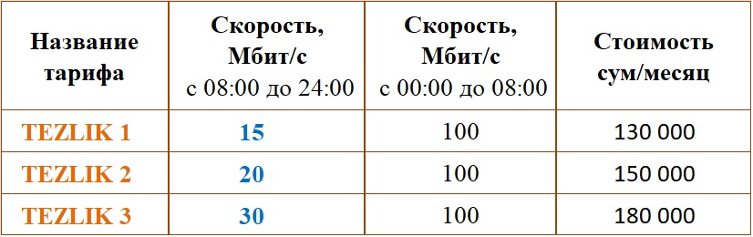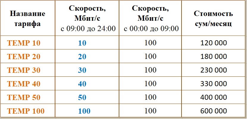 Стоимость сверхлимитного трафика, сум за 1 Мб.****